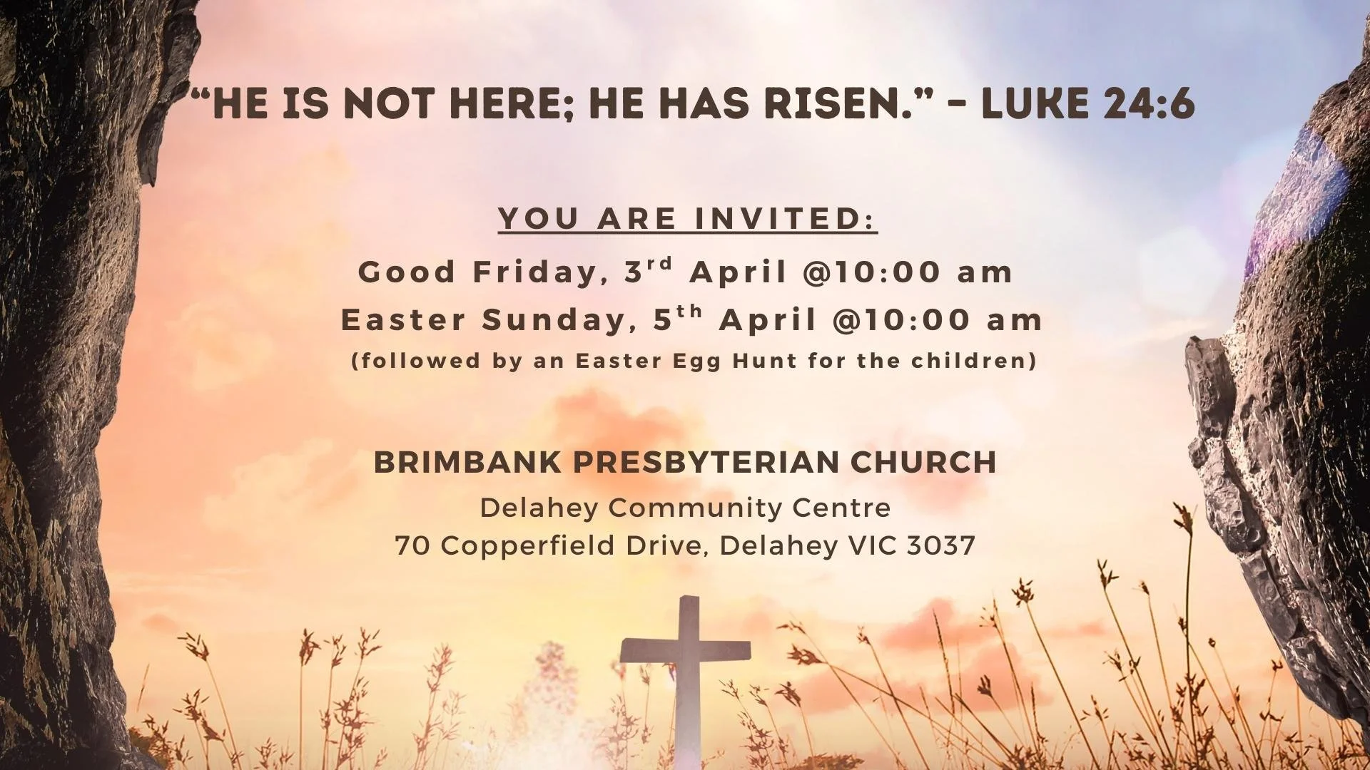 Knowing Jesus means that Brimbank Presbyterian Church seeks to be a gospel church that keeps the saving work of Jesus as our focus. This leads us to be a generous, generational and growing church, all to the glory of God.